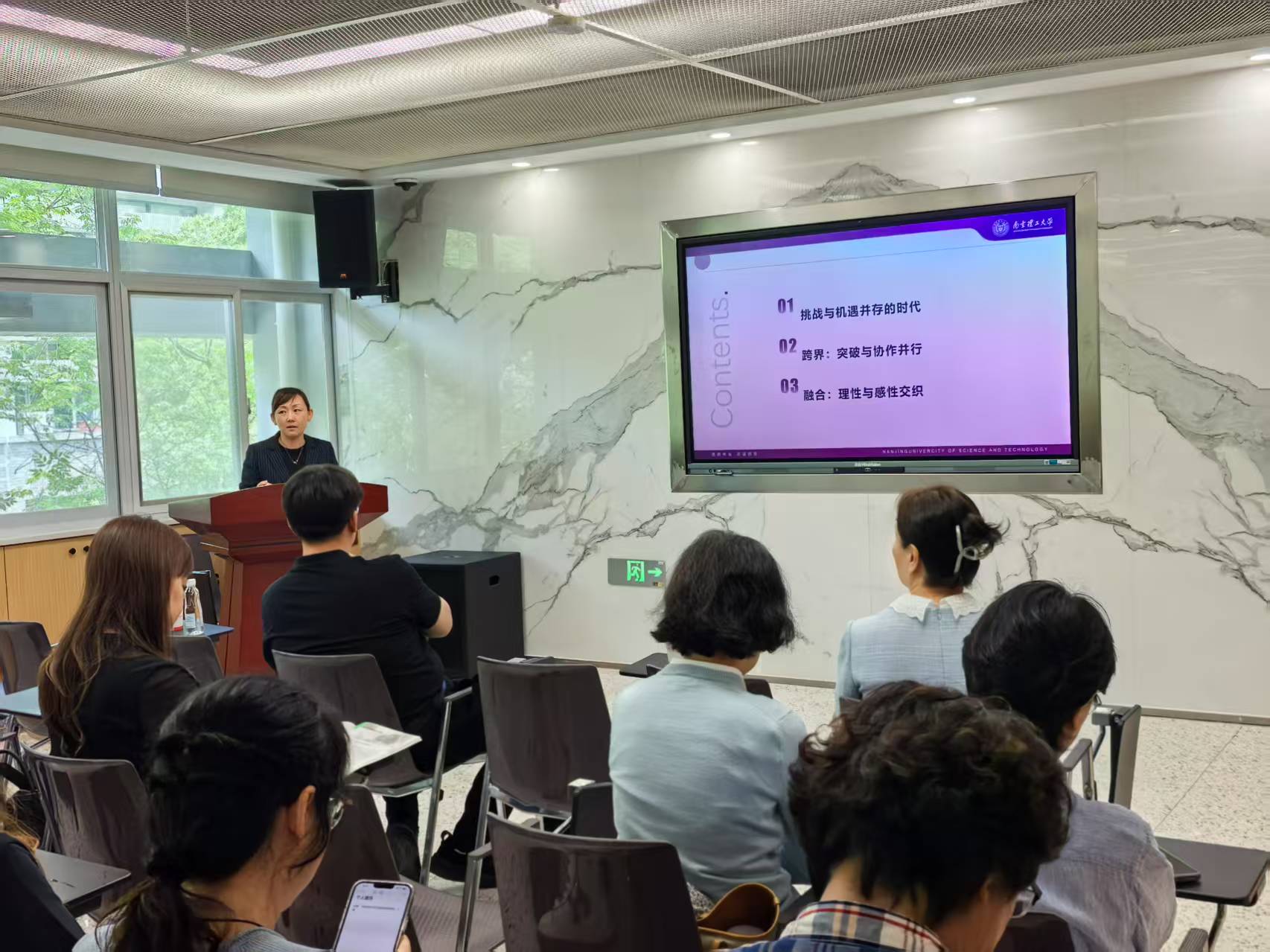 杨蔚教授以《人工智能背景下外语学科的创新发展思考》为题,系统介绍了南京理工大学外语学科跨界实践成果。通过分享语言学专业跨学科课程体系、语音技术与语言病理研究的人文融合探索等特色案例,指出外语学科的创新发展路径应以重新审视定位学科专业相互关系、专业知识对象开始,加速与人工智能技术融合,在波动中稳健布局,持续高质量发展。
