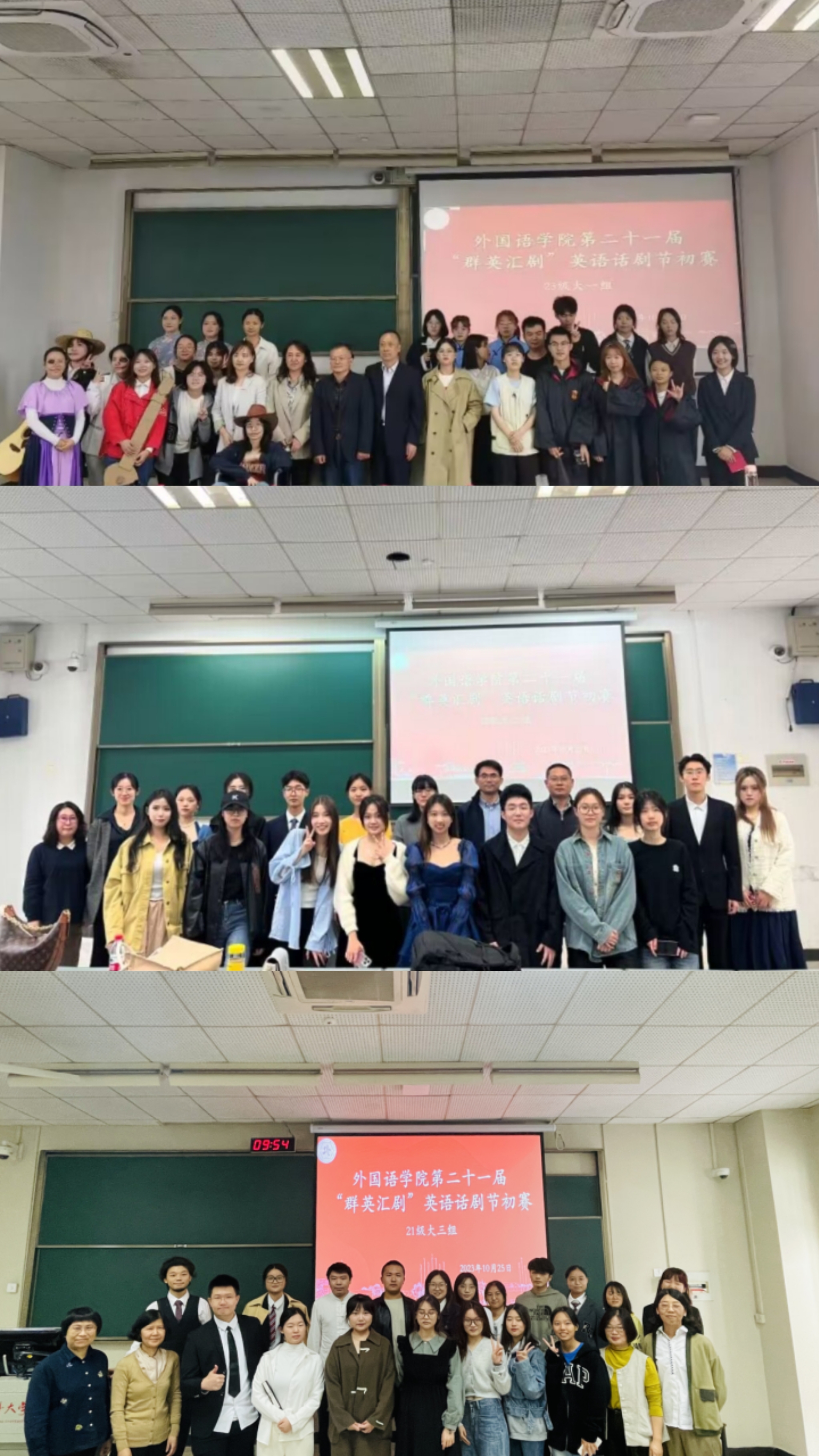 10月25日上午,中国药科大学外国语学院第二十一届“群英汇剧”英语戏剧节初赛在B111、B313、D312教室有序开展。初赛按照参赛年级分为3组进行,并邀请了学院的12位专业老师担任评委。大一至大三全体同学参与了本次活动。