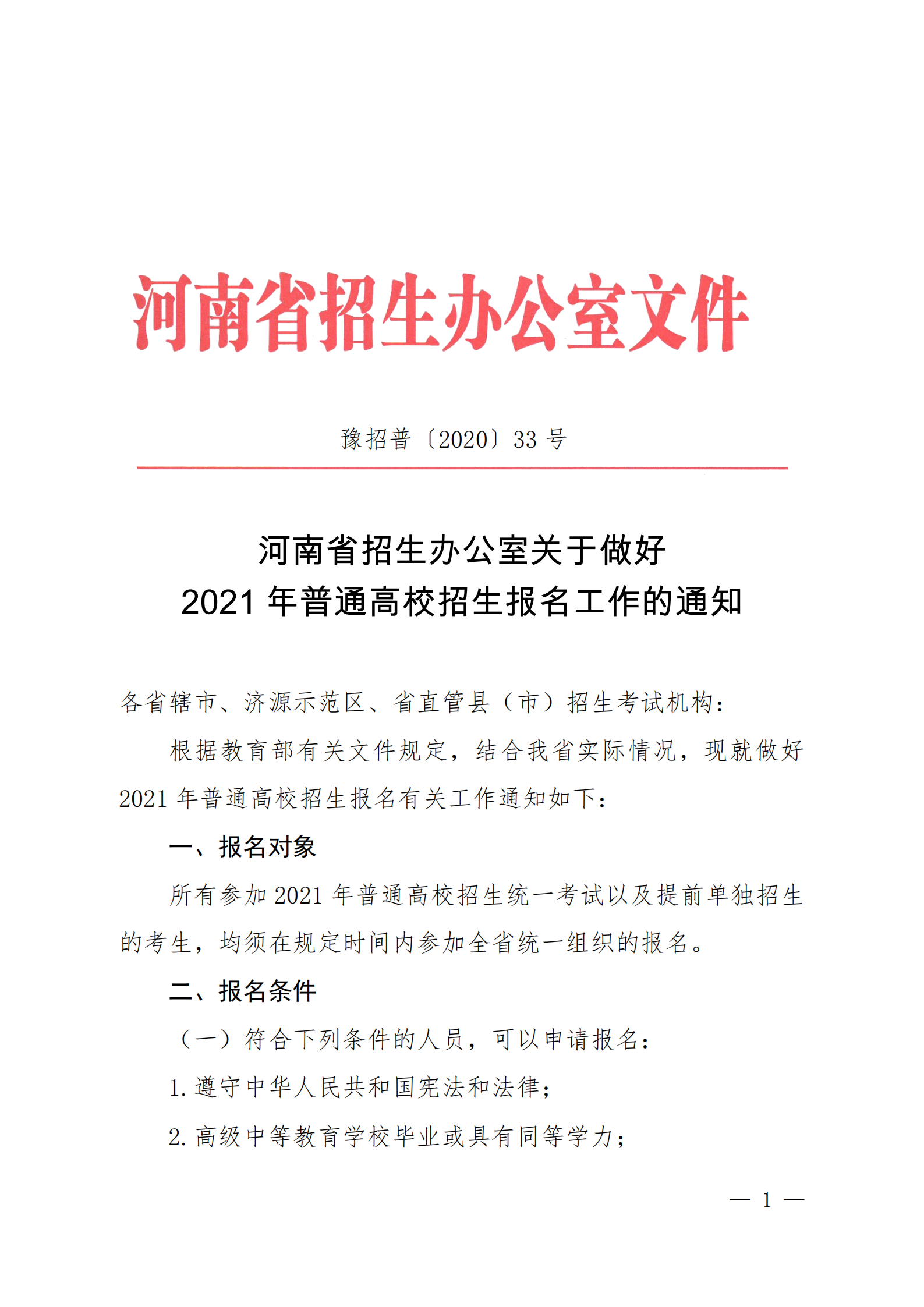 关于做好2021年普通高校招生报名工作的通知