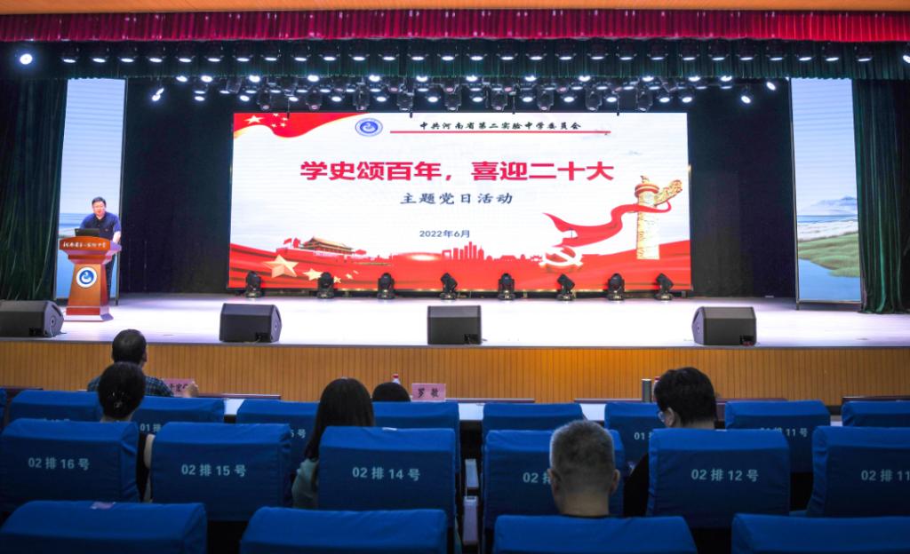 省第二实验中学开展“学史颂百年,喜迎二十大”主题党日活动。通过重温入党誓词、听党课等,教师们进一步坚定了为学生服务的初心,表示将用自己的实际行动为河南教育先出彩、出重彩贡献力量。