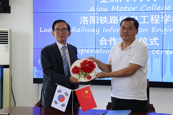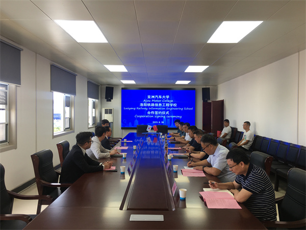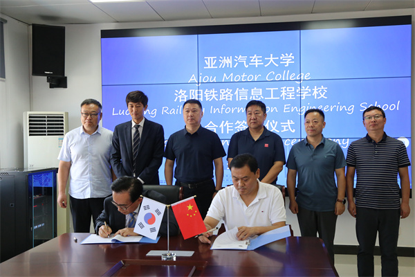 8月28日上午,洛阳铁路信息工程学校与亚洲汽车大学合作签约仪式在洛阳交通运输集团有限公司举行。亚洲汽车大学校长李樹勳,国际协力室长金權世,中国事务所长崔光彬,长三角教育研究院办公室主任朱斌,洛阳交运集团党委书记、董事长、汽车学院董事长胡斌,洛阳交运集团党委委员、副总经理、汽车学院院长陈虎,洛阳铁路信息工程学校领导李林榕、史亚非、尹亚波、李力厚及相关部门负责人参加仪式。