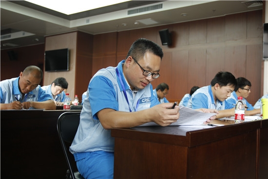 李义福在技能比武理论考试现场