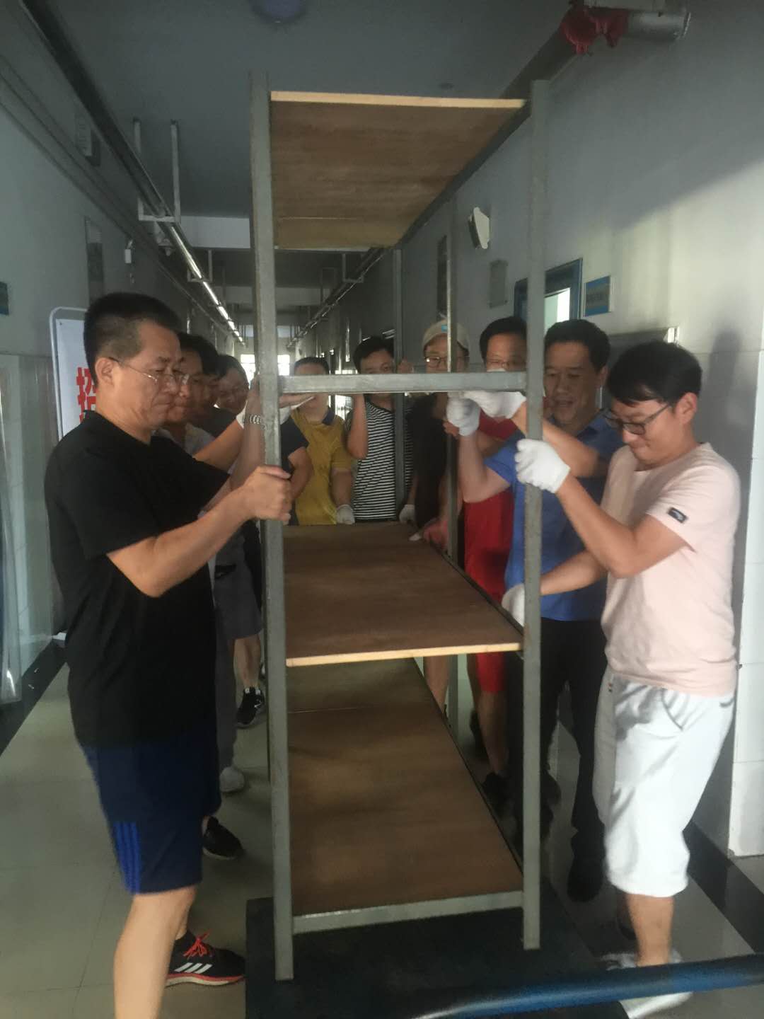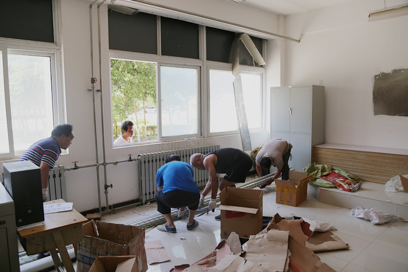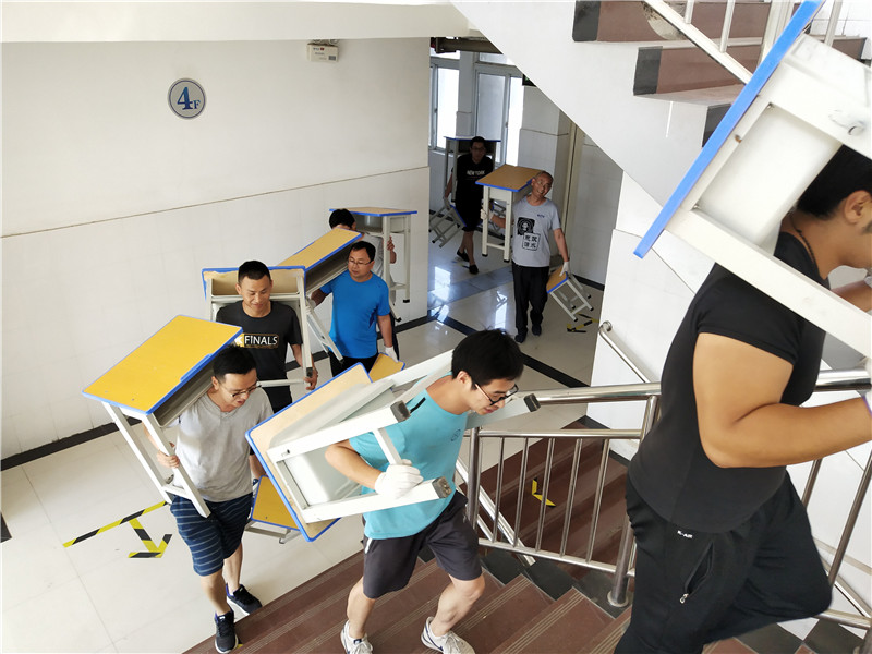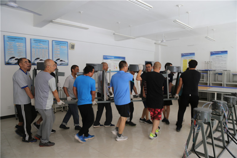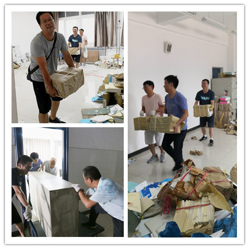 ——不忘初心、牢记使命主题教育系列报道之四编者按:“不忘初心,牢记使命”主题教育开展以来,全校党员干部悟初心、守初心、践初心,工作积极性和战斗力空前高涨,干事激情和主人翁意识明显提升,在学校实训楼和总务库房搬迁过程中,同志们主动放弃休息时间,冒着高温酷暑,挑重担、争先锋、作表率,以实实在在的努力为下学期教育教学各项工作顺利进行提供了坚强保证。 “握紧四角,大家一起用劲儿!一、二、三、起!” 7月7日上午11:00,室外温度已高达37℃,在学校二号教学楼实训教室搬迁现场,轨道信号工程系和电信工程系的党员职工正在搬运笨重的实训器材,伴随着铿锵有力的号令,一排重达数百公斤的信号方向盒,在14名青壮年党员的努力下被缓缓抬起,为了保证设备在搬运中的安全,大家一个个精神抖擞,步伐整齐,依令而行。 在一号教学楼教务科书库,电气工程系和教务科的党员职工正在清理库房,大家或肩扛,或手抬,有人打包,有人装车,有人运输,一个个汗流浃背,热火朝天。 在四号实训楼大厅南侧,总务科的同志们正在搬运钢管、铁架等维修耗材,滚滚热浪似乎更加激发了大家向酷暑叫板的勇气和向困难冲锋的斗志,虽然同志们的衣裳早已湿透,汗水顺着脸颊肆意流淌,但是一箱箱管扣、一根根钢管、一块块木板、一台台机器却一刻不停地在大家手中传递。 在搬运现场,校党委委员、副校长李文光说:“搬迁方案确定之后,同志们不顾高温酷暑,放弃休息,踊跃参与,争分夺秒,顽强作战。这不仅是学校‘搬家精神’的传承和弘扬,更体现了党员职工‘不忘初心、牢记使命’办好高水平职业学校的强烈责任感和主人翁意识,这种精神将为学校在新形势下关键时期的高质量发展奠定坚实的思想基础。” 据了解,本次搬迁共有40余名党员职工参与,经过四天的努力,大家清理总务库房5间、教务科书库2间、学生教室8间、实训教室4间,搬运后勤维修耗材备品8000余件,图书15万余册、桌椅550余套、实训设备数十套。 (撰稿、摄影:王振)