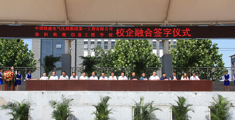 5月10日上午,我校与中国铁建电气化局集团第一工程有限公司校企深度融合签字仪式在学校运动场隆重举行。中国铁建电气化局集团第一工程有限公司党委书记、董事长施亚辉,总经理董建林,副总经理孙克炎、谭向兵和我校常务副校长王怀钦、副校长于庆斌、李文光、史亚非等校企双方领导共同出席签字仪式。