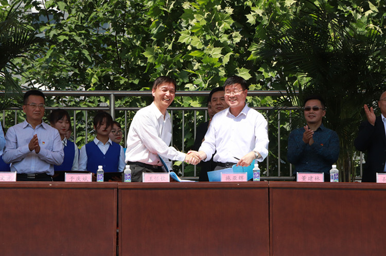 常务副校长王怀钦与公司党委书记、董事长施亚辉代表校企双方签署了《校企合作共建实训场地协议书》、《校企人才资源共享合作协议书》、《现代学徒制校企合作协议书》,并宣布成立了校企融合工作委员会,全力推动协议落实。