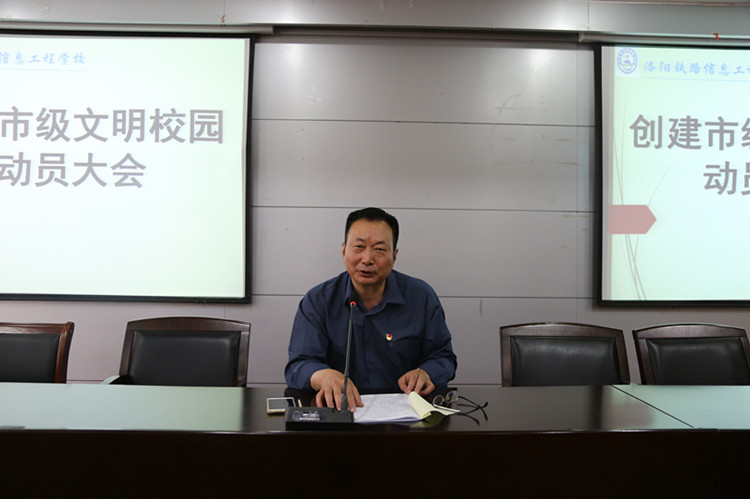 5月14日下午4:30,我校在1号实训楼2楼多功能报告厅召开创建市级文明校园动员大会。会议由党政办主任张端立主持。