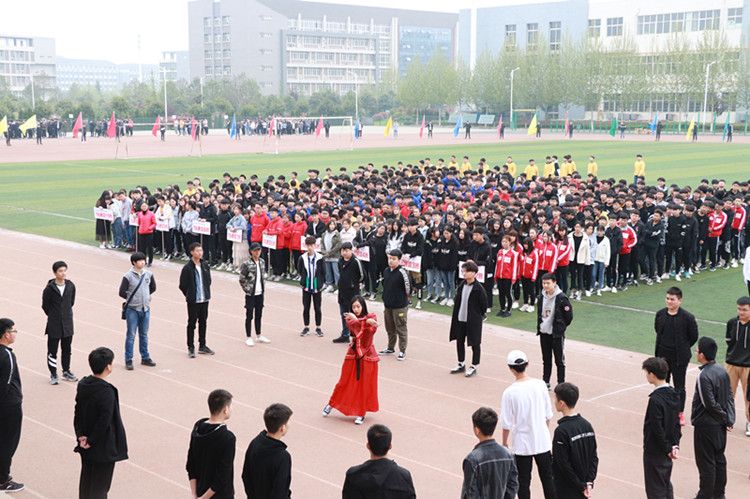 4月10日上午,我校第四十届田径运动会在学校运动场开幕式,校领导韩耀煌、杨建光、郭青,校团委书记朱亚利、本届田径运动会总裁判长张先旺参加开幕式并在主席台就坐。开幕式由校办主任张端立主持。