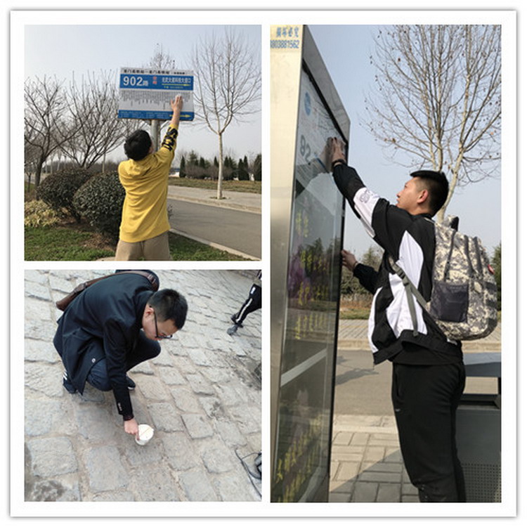路途中,同学们积极争做环保少年,遇到路旁的烟头、树枝、果皮、塑料袋等垃圾,同学们都会自觉地停下脚步,捡起送回垃圾箱;看到布满灰尘的公交站牌,同学们都会积极上前用提前准备好的抹布擦拭一新!