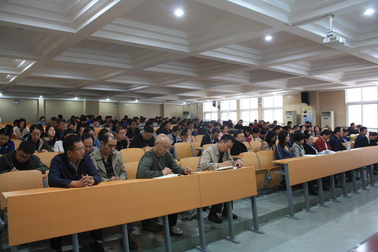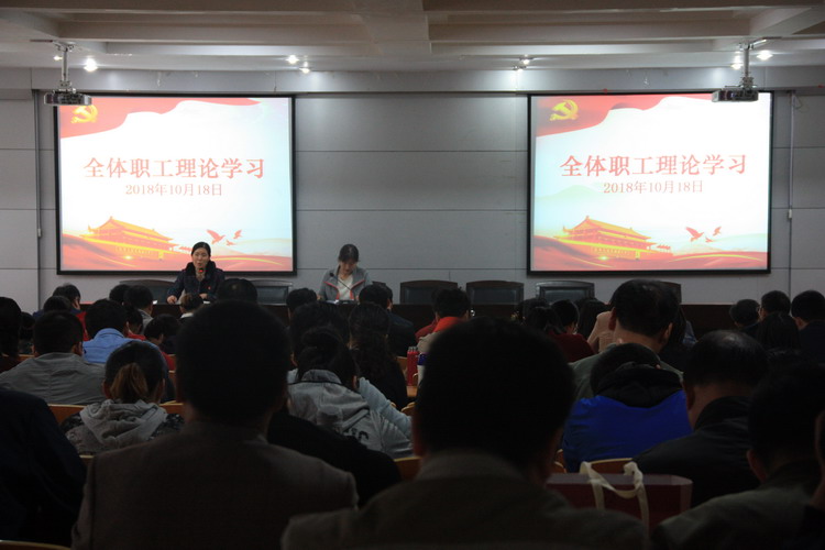 10月18日下午4:40,我校在1号实训楼2楼多功能报告厅召开全校职工大会,组织职工进行理论学习。会议由党办主任郭建丽主持。