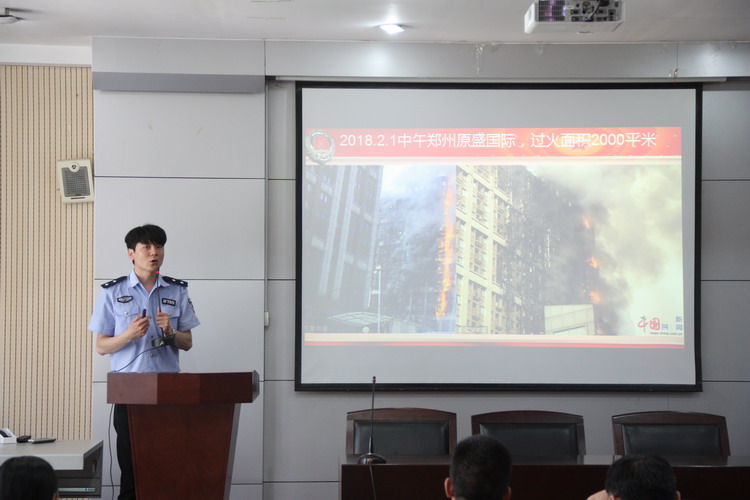 接着,洛阳消防安全宣教中心教员尤毅博为我校全体职工进行消防知识专题培训。尤教员以电器火灾、车辆火灾、楼房火灾等典型事例的现场图片、视频为例,教授大家灭火器、防烟面具的正确使用方法,以及火场逃生的基本知识,警示大家要切实提高消防安全意识,秉着“预防为主 防治结合”的原则,具有“三会”“三懂”“四能力”。