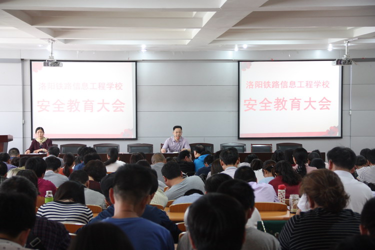 5月3日下午4:30,我校在一号实训楼二楼多功能报告厅召开全校职工安全教育大会暨消防知识专题培训会。会议由党办主任郭建丽主持。