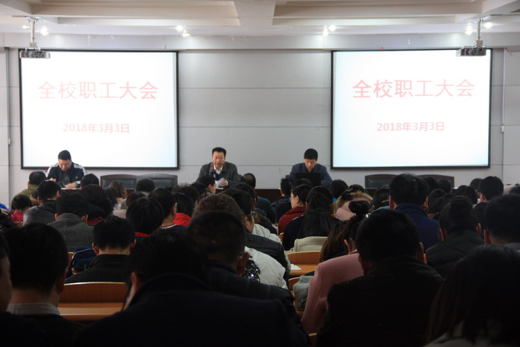 3月3日上午9:30,我校在一号实训楼二楼多功能报告厅召开新学期全校职工大会及“教学诊改”动员大会,全体教职工参加。大会由校办主任张端立主持。