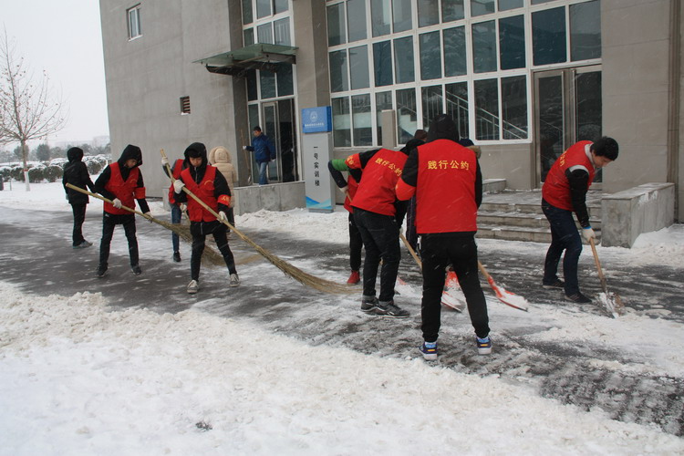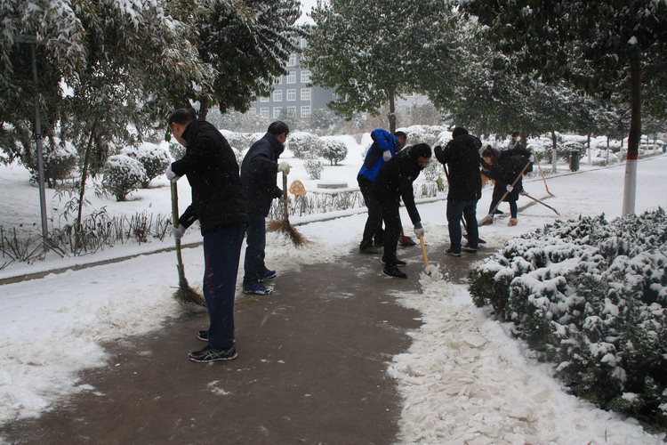 昨夜的一场雪,让校园银装素裹分外美丽,但也给学校师生出行带来了安全隐患。为保障校内师生安全,方便师生出行,1月4日9:30,我校党委组织党员干部和师生开展扫雪清道行动。