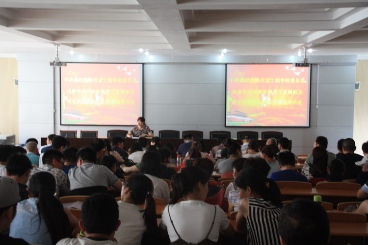 6月12日下午4:30,我校在1号实训楼2楼多功能报告厅召开党员大会,选举出席中共河南省教育厅直属机关第五次党代会党员代表。会议由党委副书记兼纪委书记郭青主持。