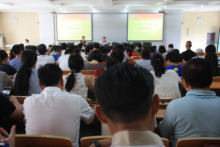 6月15日下午3:00,我校在1号实训楼2楼多功能报告厅召开全体党员大会,党委书记陈云峰做《学习贯彻十八届六中全会精神辅导报告》,会议由党办主任郭建丽主持。