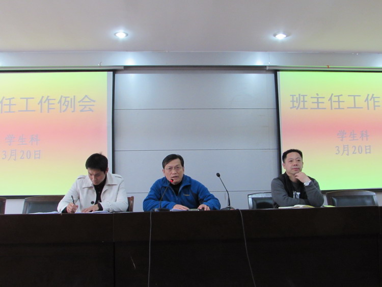 3月20日,学生科在1号实训楼2楼阶梯教室召开了班主任工作大会,重点研究部署了“开展争建文明校园、争创文明班级、争做文明学生”三争创系列教育活动工作。校党委书记陈云峰,校工会主席、副校长史亚非,校团委书记、学生科科长张波及全体班主任参加了本次大会。