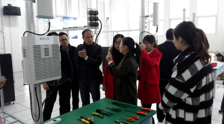 签字仪式结束后,双方领导、老师和同学们前往2#教学楼三楼基站云仿真教室参观指导。该教室由深圳讯方建设实施,是一个基于云计算、物联网、仿真模拟技术的理实一体化教室。它分为仿真模拟区和实做区,可通过计算机软件仿真的方式对实做区内的真实设备进行仿真实验,达到让学生实做前充分熟悉设备、操作规程的目的,也可大大减少耗材的用量。配套的监控、电子门禁设备能够降低管理负担,教学全过程完全由教师主导,不需要管理人员参与。