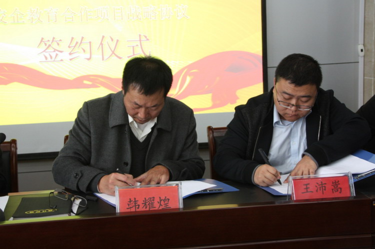 11月16日,在图书信息楼三楼会议室举行了洛阳铁路信息工程学校与深圳市讯方技术股份有限公司校企合作签字仪式。讯方公司教育事业部副总经理王沛嵩、客户经理朱传奇、段春光,校长韩耀煌、副校长王怀钦、副校长杨建光出席签字仪式,参加仪式还有教务科通信教研室的教师以及2015级通信专业的部分同学。签字仪式由数字校园建设办公室主任邱智铖主持。