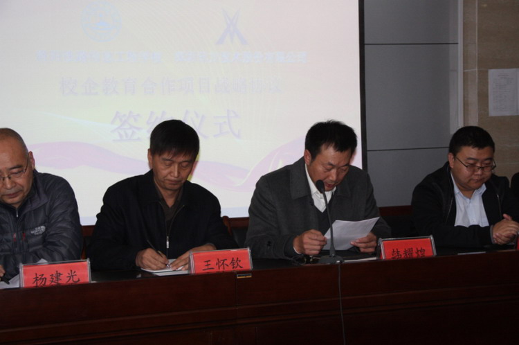 王校长讲话,首先祝贺双方建立校企合作关系,并真诚希望双方按照协议内容,在师资培训、专业共建、就业推荐、教材实训开发、共办技能大赛等方面开展深入合作,共同为我校通信专业注入强劲动力,使通信专业重振雄风,重新成为学校专业群中的王牌。