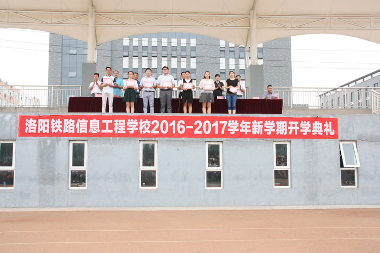 9月12日下午,我校在操场隆重举行2016-2017学年新学期开学典礼,全校师生参加。 会上,校长韩耀煌寄语2016级新同学,要树立自信,时刻暗示自己我能行,更要严格遵守《中等职业学校学生公约》,做一名合格的中职学生。大家来到我校,就意味着将来要成为一名铁路建设人才,希望同学们认真学习,勤于实训,充分发挥聪明才智,将来为我国铁路事业的发展做出自己的贡献。 随后,校党委书记陈云峰宣读了有关我校教职工教学教研成果的表彰决定。副校长史亚非宣读了《关于表彰2015-2016学年第二学期先进集体、先进个人的决定》和《关于表彰2015-2016学年优秀班主任的决定》。 最后,校领导给获奖师生颁发荣誉证书,希望他们再接再厉,再创佳绩,鼓励全体师生向他们学习,共创洛阳铁路信息工程学校更加灿烂的明天! 供稿、摄影:李焕