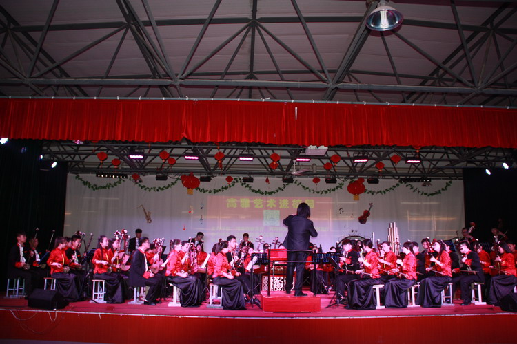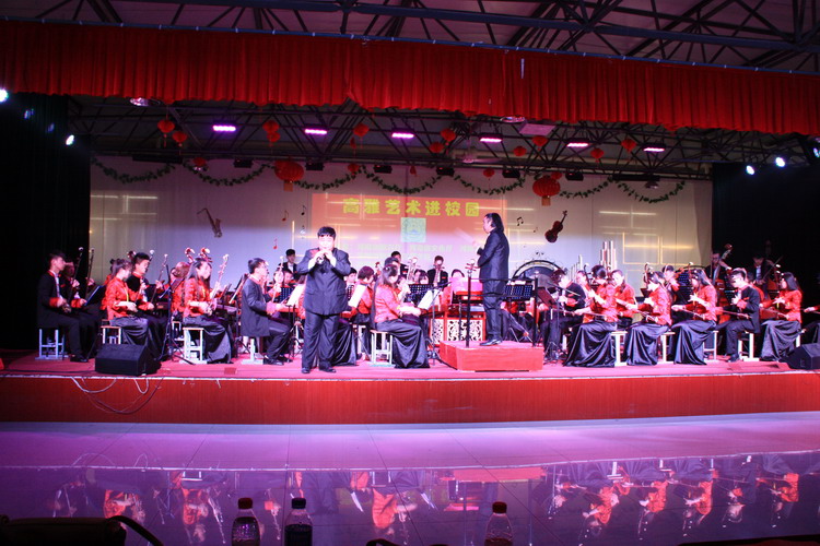 6月6日下午,2016高雅艺术进校园?洛阳师范学院青年民族乐团到我校进行专场演出。我校副校长杨建光、党委副书记兼纪委书记郭青、副校长史亚非与我校全体师生共同观看了演出。 演出在《庆典序曲》中拉开序幕。民族管弦乐《好汉歌》、唢呐演奏《百鸟朝凤》、男声独唱《母亲》、女声独唱《锦绣前程》、古筝重奏《西域随想》、二胡齐奏《战马奔腾》等表演精彩纷呈,高潮迭起,期间乐队指挥张强老师给师生一一介绍了乐器并进行试听演奏。 此次演出取得了巨大成功,陶冶情操,聆听经典,弘扬了我国各民族优秀的民族音乐经典,提高了师生的音乐鉴赏力,引领了校园高雅文化导向,促进青年学生向真善美发展。