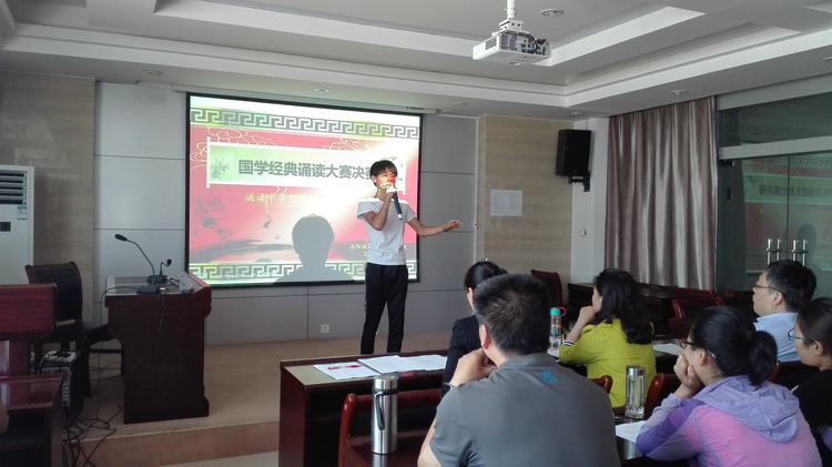 “君不见黄河之水天上来,奔流到海不复回……”、“关关雎鸠,在河之洲……”一首首经典诗词,随着悠扬的古琴旋律,在同学们抑扬顿挫的诵读声中展示了国学经典的文化魅力……5月24日,由我校教务科主办、学生科大力协助的“诵读中华经典,营造书香校园”2016首届国学经典诵读大赛在图书信息楼三楼报告厅进行决赛。经过层层选拔,共有15名选手参加决赛,教务党支部书记尹亚波,语德教研室教师李耀进、秦凤美、惠红丽、李晶晶、马聪聪、孙白玉、焦琳担任本次比赛评委。