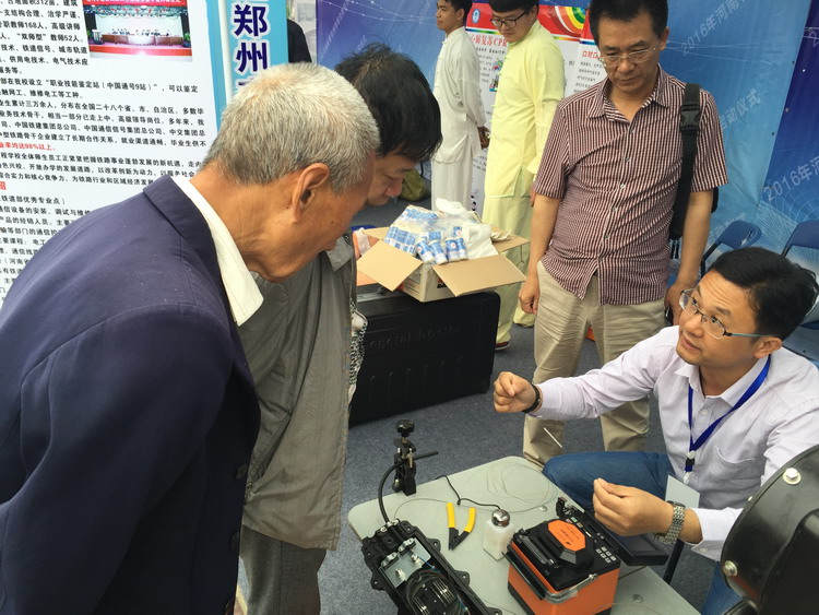 仪式结束后,参会嘉宾观看了“2016年河南省暨郑州市职业教育活动周”成果展示和技能展演。来自70所省、市职业(技工)学校结合自身专业特色通过展板、现场体验、技能展演等,向大家展示了170余项各自学校的品牌特色项目。杨校长和段科长分别向参会嘉宾详细讲解了我校特色专业及学校发展状况。我校代表在活动现场为大家演示了光纤熔接及光纤在生活中应用、信号机工作原理等,职业教育活动周的启动展示了职业教育教学成果,让群众感受职业教育服务美好生活。