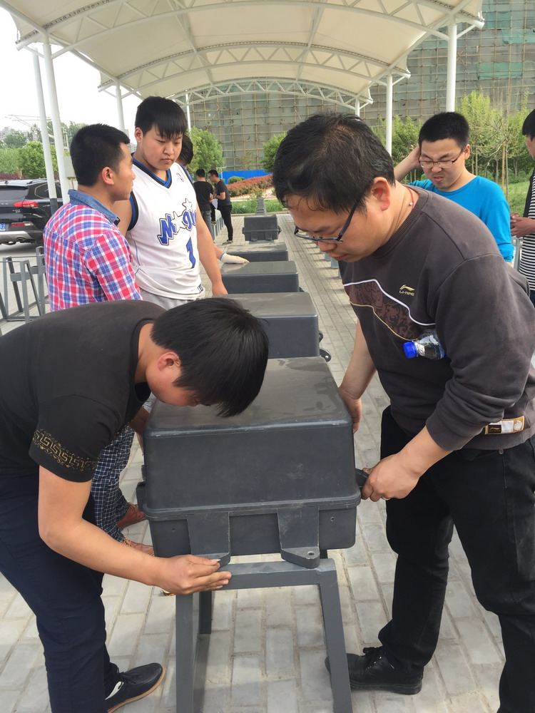 此次箱盒的安装用到了一些旧架子和旧铁铸箱盒,前期老师和学生们对旧设备进行了打磨和刷漆,安装时个别箱盒孔距不合适,还要进行切割调整,施工过程中虽然很辛苦,但是同学们个个不怕苦,不怕累,在安装过程中体会了现场施工的工序和规范,对于他们专业知识的掌握也大有帮助。