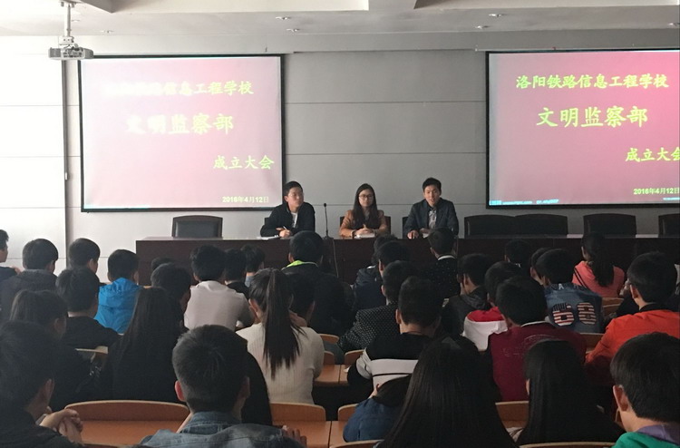 4月13日,学生科在1号实训楼2楼多功能报告厅举行了文明监察部成立大会,学生科科长张波、团委副书记马瑞出席了本次大会。