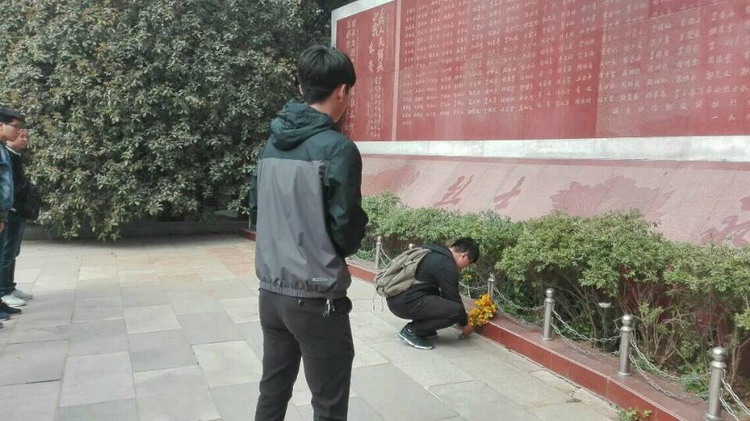 到达陵园后,全班同学在烈士英明录的大墙下进行庄严宣誓,以铭“身为中华之子孙,誓为中华之崛起”之志,缅怀逝去的先烈们在战争岁月中为祖国抛头颅、洒热血的豪情壮举。学生代表为先烈们献上了鲜花。