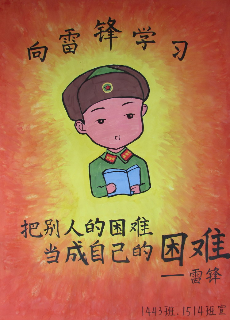 海报大赛历经一周的微信投票以及评委老师现场评比,最终1534班孔雷朋的海报以鲜明的艺术感染力荣获最佳作品奖;1518班任德的作品在微信投票中以828票的绝对优势胜出,荣获最佳网络人气奖;1443班王磊、程一杰创作的雷锋活泼可爱,受到评委老师一致的认可,荣获最佳创意奖。