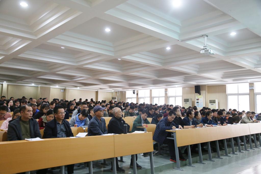 10月28日下午,我校在一号实训楼二楼多功能报告厅召开全校职工大会。校党委副书记、校长韩耀煌为全体职工讲授了题为《增强赢得中美贸易战的信心》的形势与政策教育课。大会由党政办主任张端立主持。