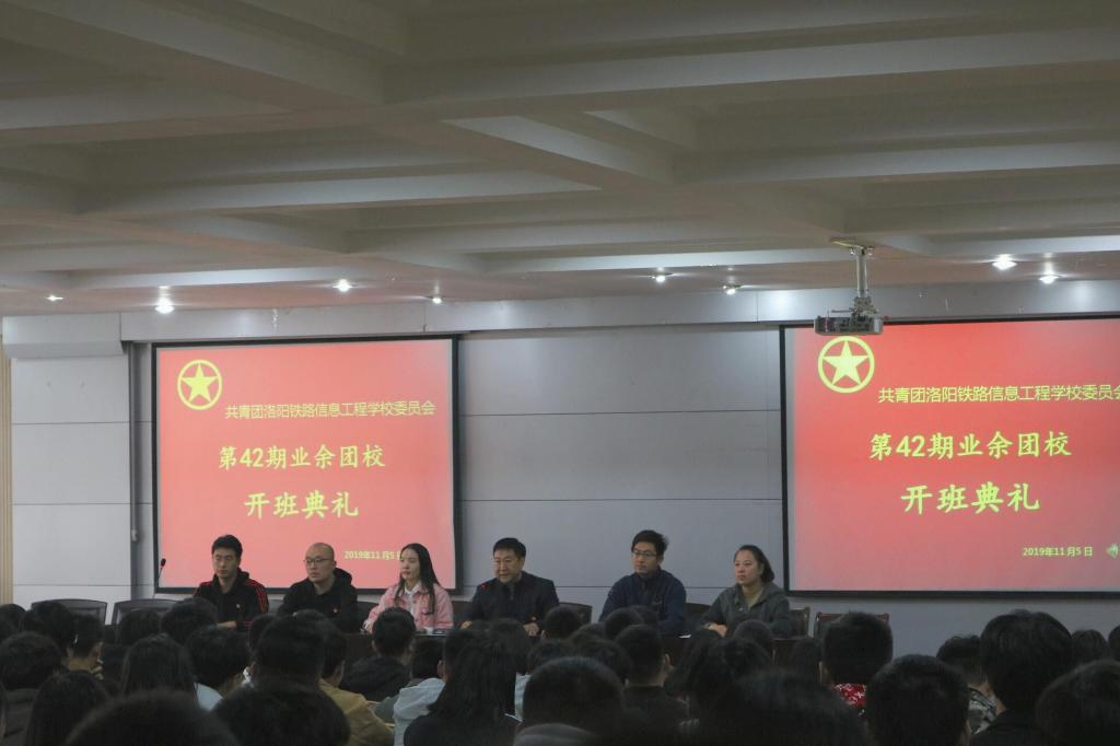2019年11月5日下午,校团委在1号实训楼2楼多功能报告厅举行第42期业余团校开班典礼。校党委书记李林榕、团委书记朱亚利、电信工程系团总支书记陈志坚、轨道交通信号系团总支书记王笑禹、电气工程系团总支书记宋萌萌及360余名入团积极分子共同出席开班仪式。典礼由团委付浩杰老师主持。