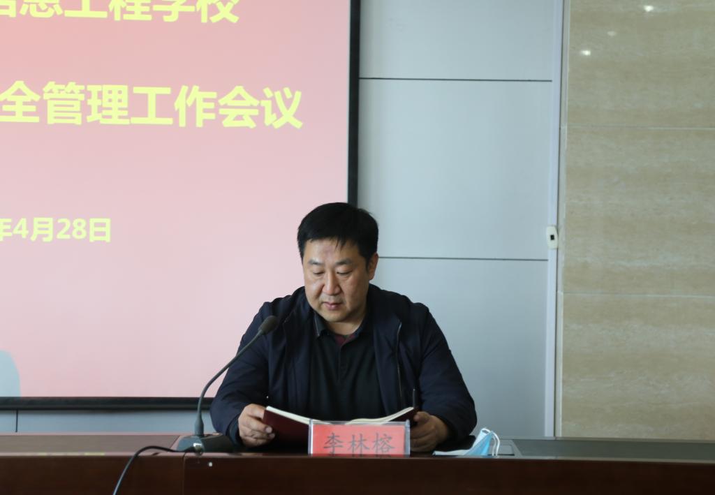 4月28日上午,我校在图书信息楼三楼会议室召开学校疫情防控与安全管理工作会议。校领导韩耀煌、李林榕、王怀钦、杨建光、郭青、于庆斌、李文光、史亚非及全体中层领导参加会议。本次会议由副校长、工会主席史亚非主持。