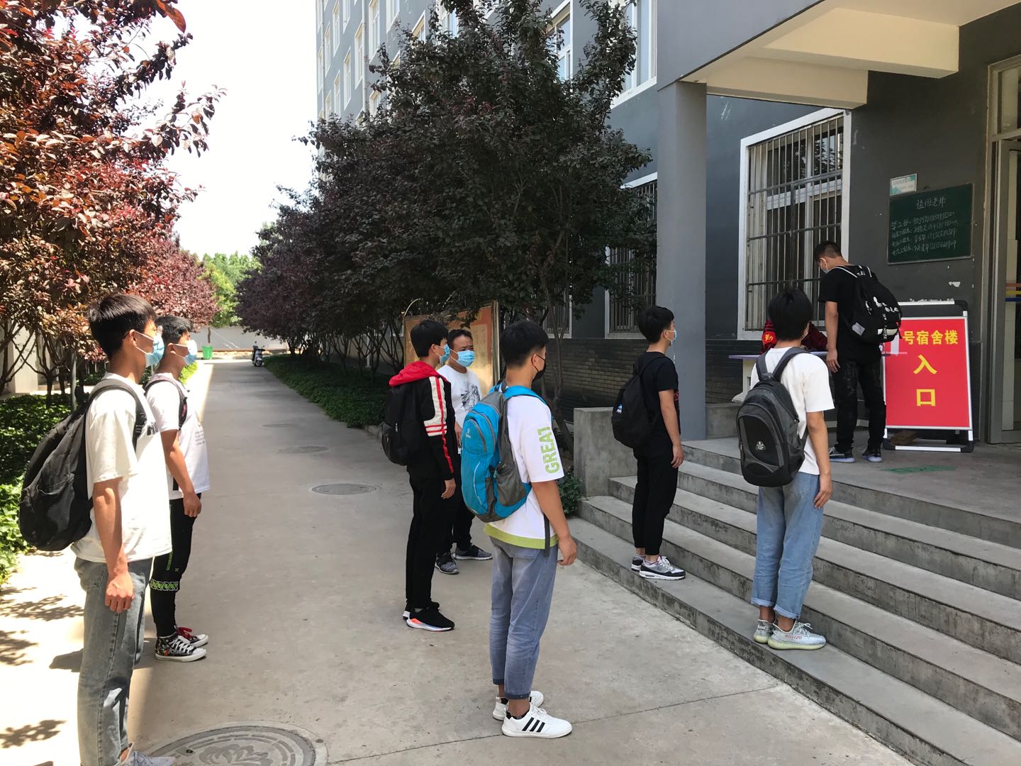 “同学你好,请提前出示健康码、提交承诺书,主动配合体温检测!全程戴好口罩,前后保持1米。”早上7点30分,学校领导及有关部门负责同志已早早站在学校门口,迎接同学们“回家”。