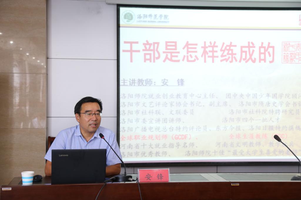 (洛阳师范学院就业创业教育中心主任安锋为培训班授课)
