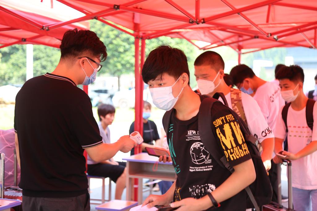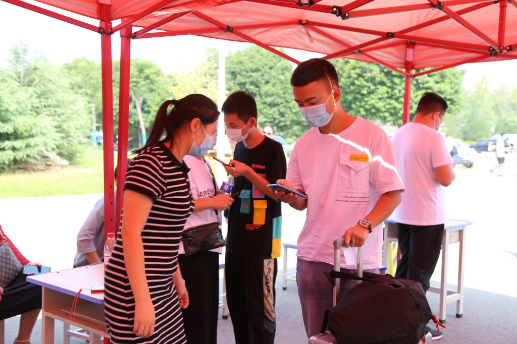 你的欢声笑语,就是校园里最动人的乐章。8月29日、30日是我校2019级学生返校复学时间,一大早,负责学生接待和疫情防控的老师和志愿者们就已将健康码查验处、体温测量处、身份核验处、行李消杀处以及降温观察区布置妥当,满怀期待地等候着各位同学们的到来。