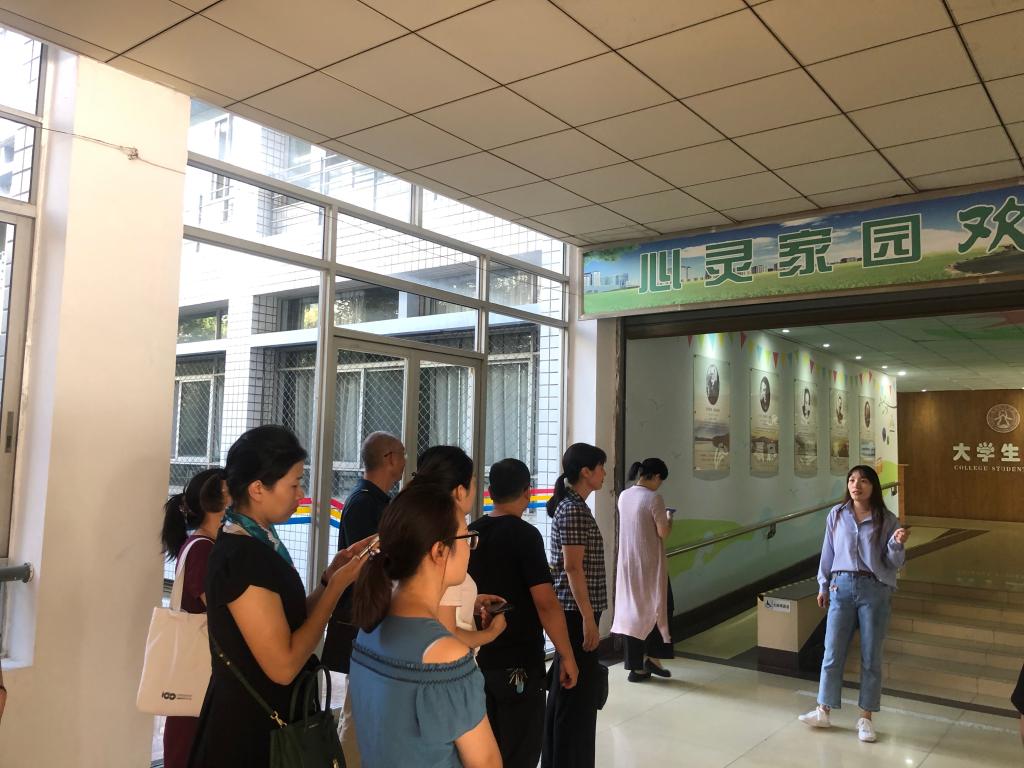 郭青一行先后参观了心理健康教育中心预约接待室、心理咨询室、宣泄室、心灵阅读室、团体活动室、音乐放松室、色彩放松室、注意力放松室和心理情景剧场。