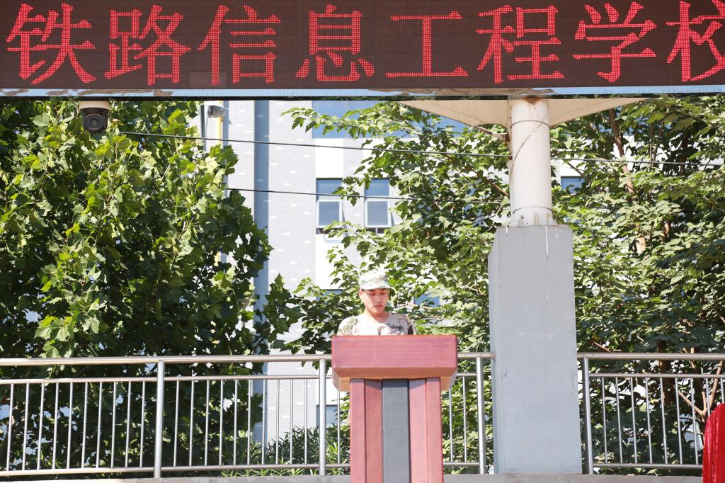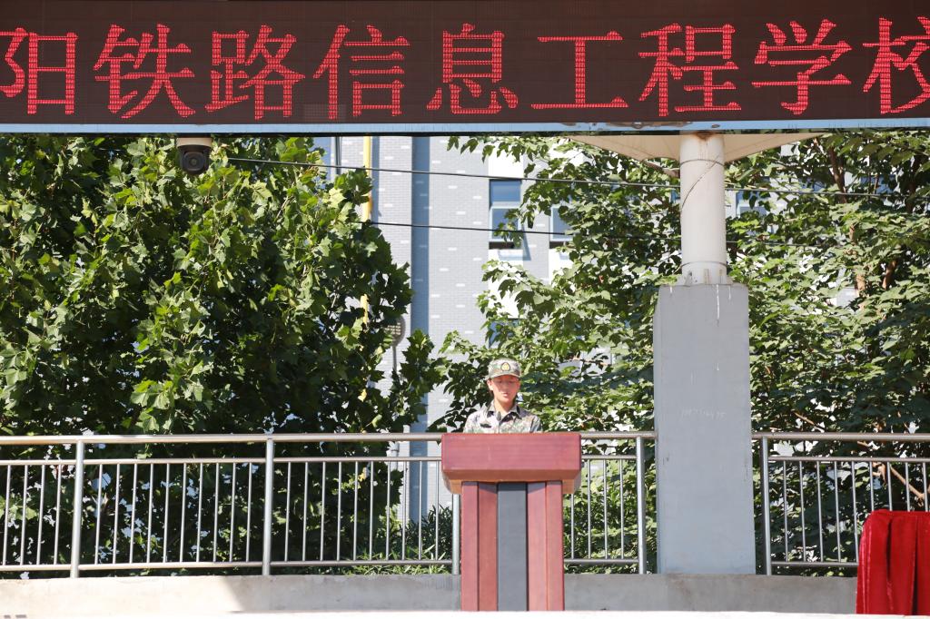 副校长杨建光宣读《洛阳铁路信息工程学校关于表彰2020级新生军训先进集体和先进个人的决定》。校领导为军训优秀班级颁发奖状。