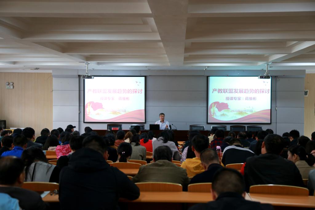 签约仪式结束后,洛阳市轨道交通公司特邀顾问蒋维彬为全校职工作了题为《产教联盟发展趋势的探讨》的主题报告。