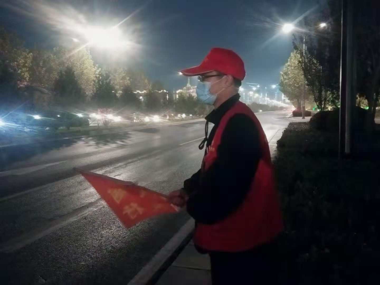 执勤期间,老师和同学们头戴小红帽,身穿红马甲,手拿小红旗,克服低温、寒风等恶劣天气,按照“红灯停,绿灯行”的指令,认真引导行人遵守交通规则,并对乱闯红灯、横过马路等不文明行为进行劝导,让城市交通的出行环境更加和谐有序。
