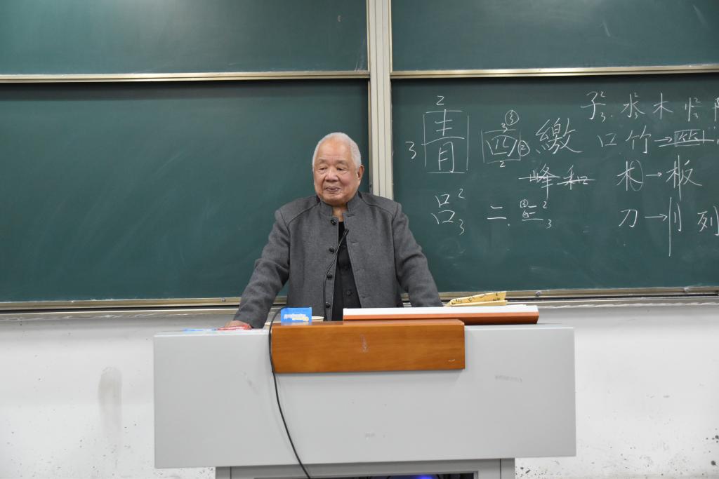 李少平教授以“汉字书写规律”为主题,为师生展示了自己的书法作品,从书法中的阴阳矛盾协调入手,用生活中常见的例子生动的展示了书法艺术的魅力,同时介绍了他自己的发明成果“十字黄金格”、“汉字结构模型”,让学生掌握书写的技巧。李少平教授用深入浅出的方式把内涵深蕴的书法艺术讲得通俗易懂,赢得了在座师生的阵阵掌声。