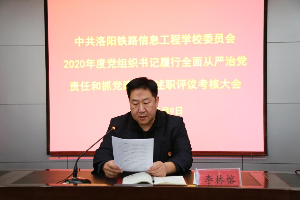 校党委书记李林榕向大会进行述职。他用“铁、严、紧、树、快”等五个关键字总结了2020年度学校党委的主要工作。他指出,2020年,在厅党组的正确领导下,校党委坚决落实全面从严治党战略部署,不断加强党的建设,压实管党治党责任,让理想信念“铁”起来,履行责任“严”起来,纪律之弦“紧”起来、党的旗帜“树”起来、发展责任“担”起来。同时,他还强调,下一步校党委将处理好建设与质量的关系,处理好理论与实践的关系,处理好继承与创新的关系,全方位夯实党建工作基础,努力提升履行管党治党责任的质量和水平。