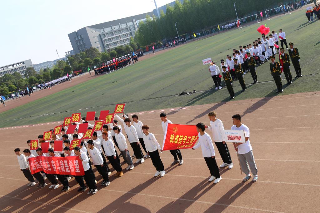 轨道信号工程系的同学们激情朗诵《七律·长征》,并用热情洋溢的舞蹈展现洛铁学子青春爱国的积极风貌;电气工程系的同学们踏着鼓声,不断变换队形,以百人制作党旗向党的百年华诞献礼;电信工程系的同学们以礼仪操的形式展示了我校实习生与洛阳地铁实习的精彩剪影,并以巨幅旗帜展示党的百年发展历程。
