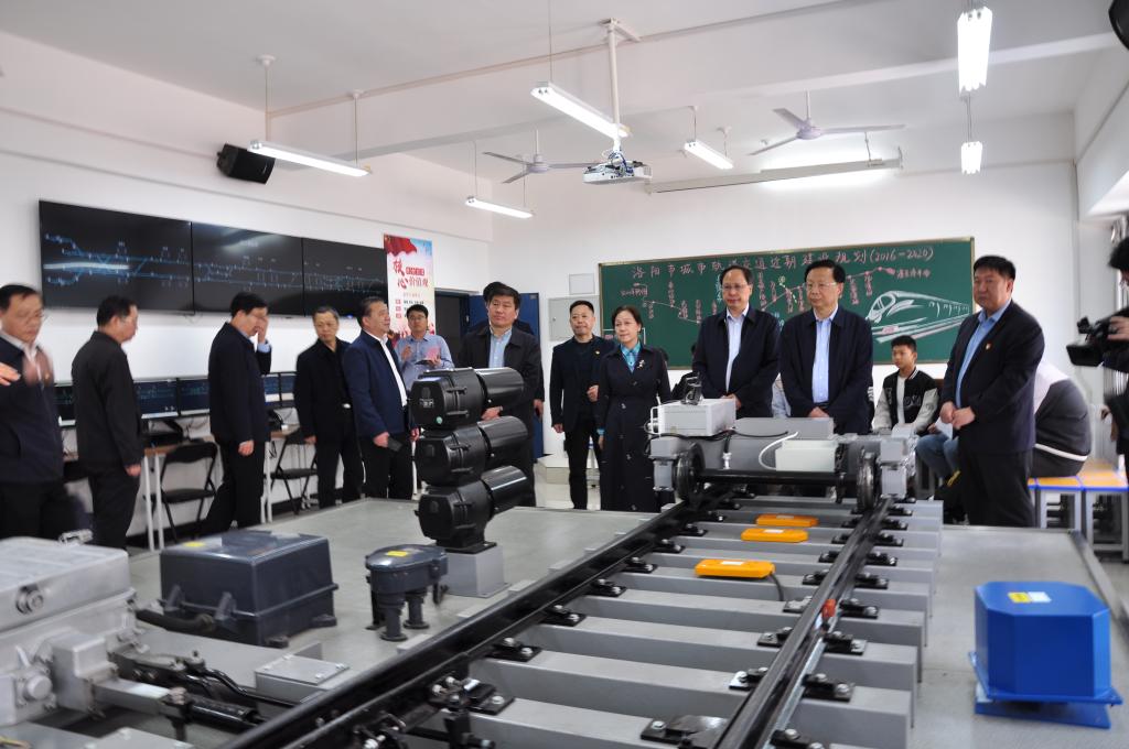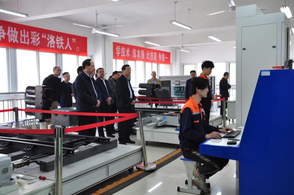 参观后,高体健与学校领导就办学经验、存在的薄弱环节以及发展瓶颈进行了交流探讨。他充分肯定了学校目前在校企合作、校企共建、人才培养等方面取得的成绩。他指出,职业学校不仅要培养高素质技能型人才,更要有高水平应用型师资队伍,要通过深化产教融合、校企双向流动、师生共赛、以赛促教等方式,不断优化“双师”结构,提升“双师”水平。他强调,职业学校要立足专业优势,重点围绕地方经济社会发展需求,加强与地方政府、企业的合作,充分发挥人才资源优势,不断培养实用型技能人才。他希望,学校不断增强发展信心,尽快牵头成立洛阳轨道交通职教联盟,早日实现升高职的发展愿景,为河南职业教育发展贡献洛铁力量!