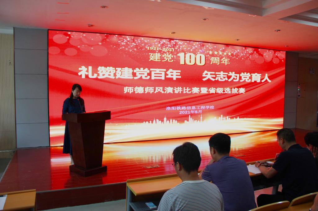 来自各系部、科室的8名教师代表依次上台演讲,他们以“礼赞建党百年 矢志为党育人”为主线,以弘扬良好师德师风为切入点,结合自己的成长和工作经历,讲述了一个个爱岗敬业、甘为人梯、乐于奉献的感人事迹。选手们热情洋溢的演说、饱含深情的话语、直击心灵的育人故事,一次次感动着现场的所有老师,赢得了大家阵阵掌声。最终,经过现场评委组的公正评选,石银、李梦晨两位老师脱颖而出,将代表学校参加省赛。