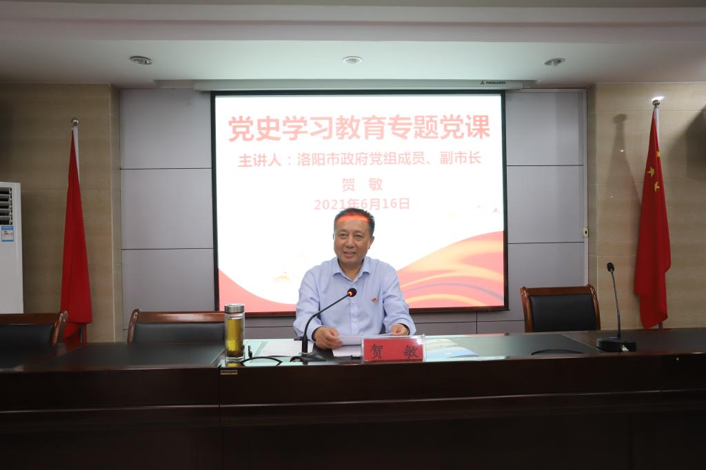 贺敏在学校图书信息楼三楼会议室为学校党员师生代表上专题党课。党课内容丰富、案例感人、充满温度、令人鼓舞。他指出,学校是青年人才的聚集地,应当成为党史学习教育的排头兵,要用好党史这本“最好的教科书”,引导青年学子立大志、明大德、成大才、担大任,引导广大师生学党史、感党恩、听党话、跟党走,推进党史学习教育走深走心走实。他强调,开展党史学习教育意义重大,影响深远,要将其作为一项重要政治任务,高标准高质量完成各项目标任务,真正把学习教育成果转化为立德树人的工作成效,转化为学科建设、师资打造、人才培养的实际效果。他希望全校师生厚植爱国情怀、树立远大理想,传承优良作风、担当时代重任,发扬奋斗精神、练就过硬本领,将自身“小我”融入到祖国和人民的“大我”之中,与时代同步伐,与人民共命运。他勉励全体青年学子将个人梦想与洛阳都市圈、副中心城市发展结合起来,勇做地方建设的担当者、奉献者,勇做走在时代前列的奋进者、搏击者。