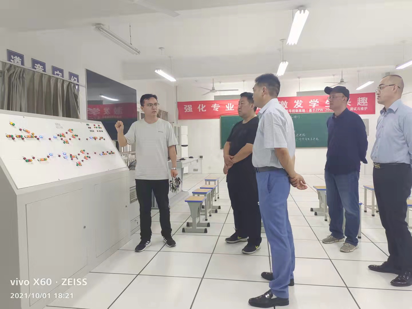 吴志岭处长一行先后参观了我校计算机连锁实训室、高铁信号全功能实训室、CBTC实训室和铁路综合实训演练场、城市轨道交通综合实训基地,对学校“双高”建设以来取得的项目建设成果给予了肯定。