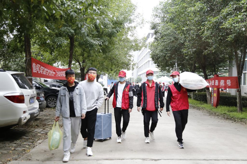 为全力做好迎新工作,校属各部门分工明确,任务具体,积极创新报到形式,采用线下报到、线上统计,实时掌握新生报到入学最新情况。