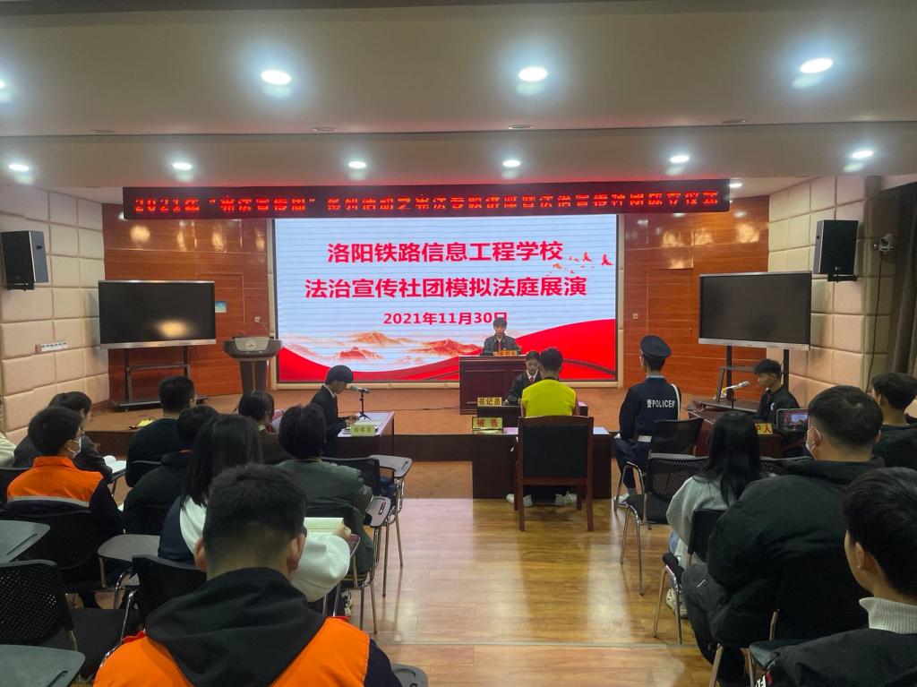 法治宣传社团社长李志远宣读了社团章程,社团成员进行了模拟法庭展演。通过观看展演,大家对庭审的认识更加直观。本次活动增强了法律意识和法治观念,使大家真正做到学法、懂法、守法、用法。
